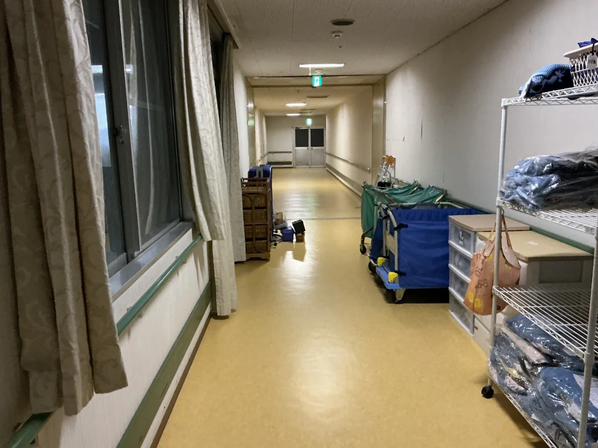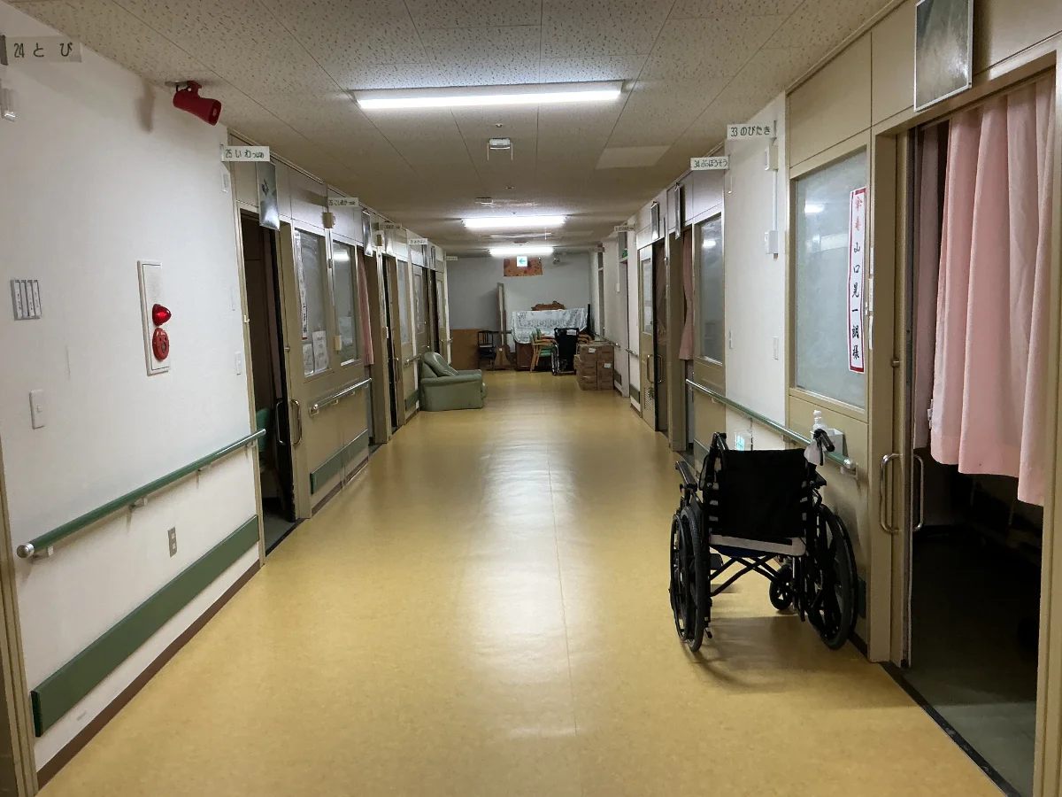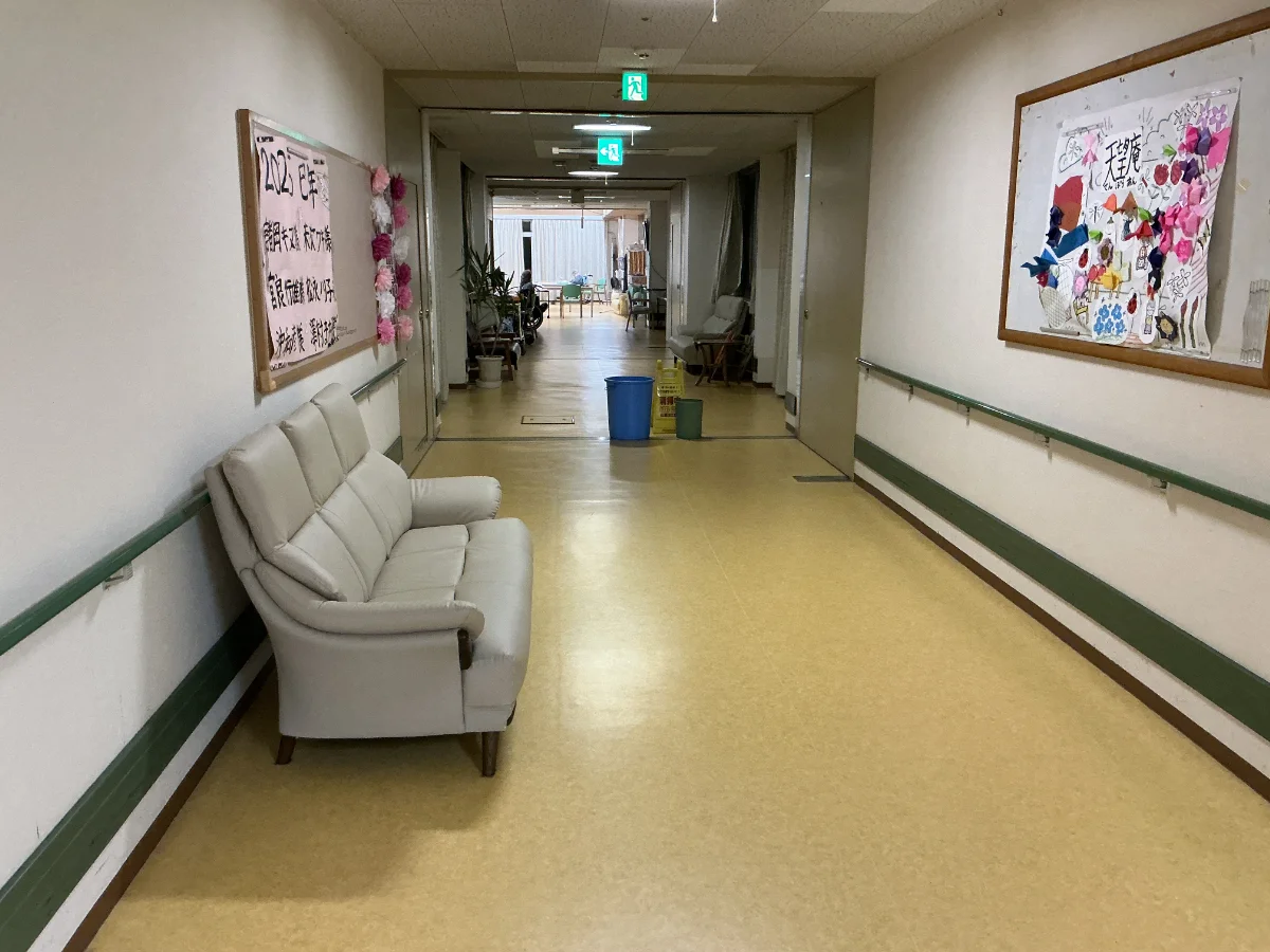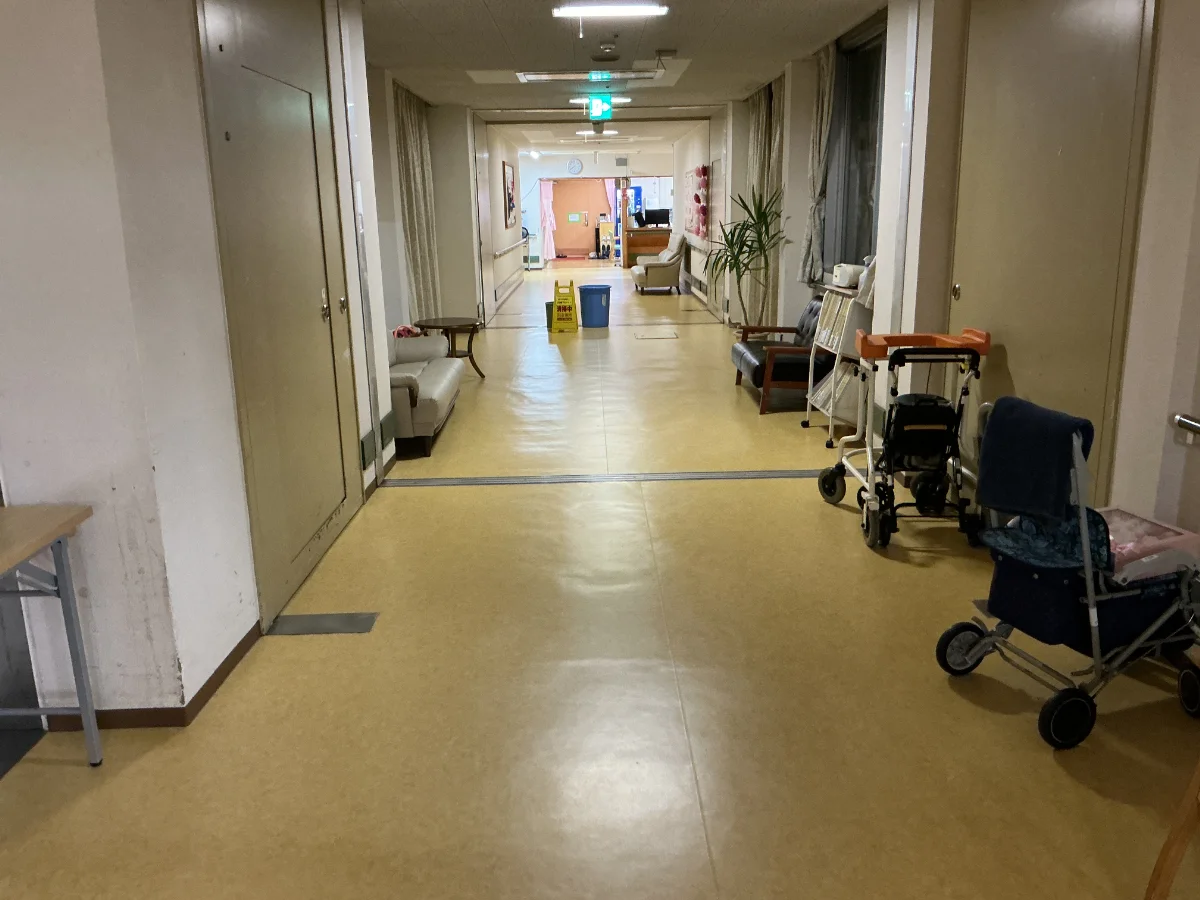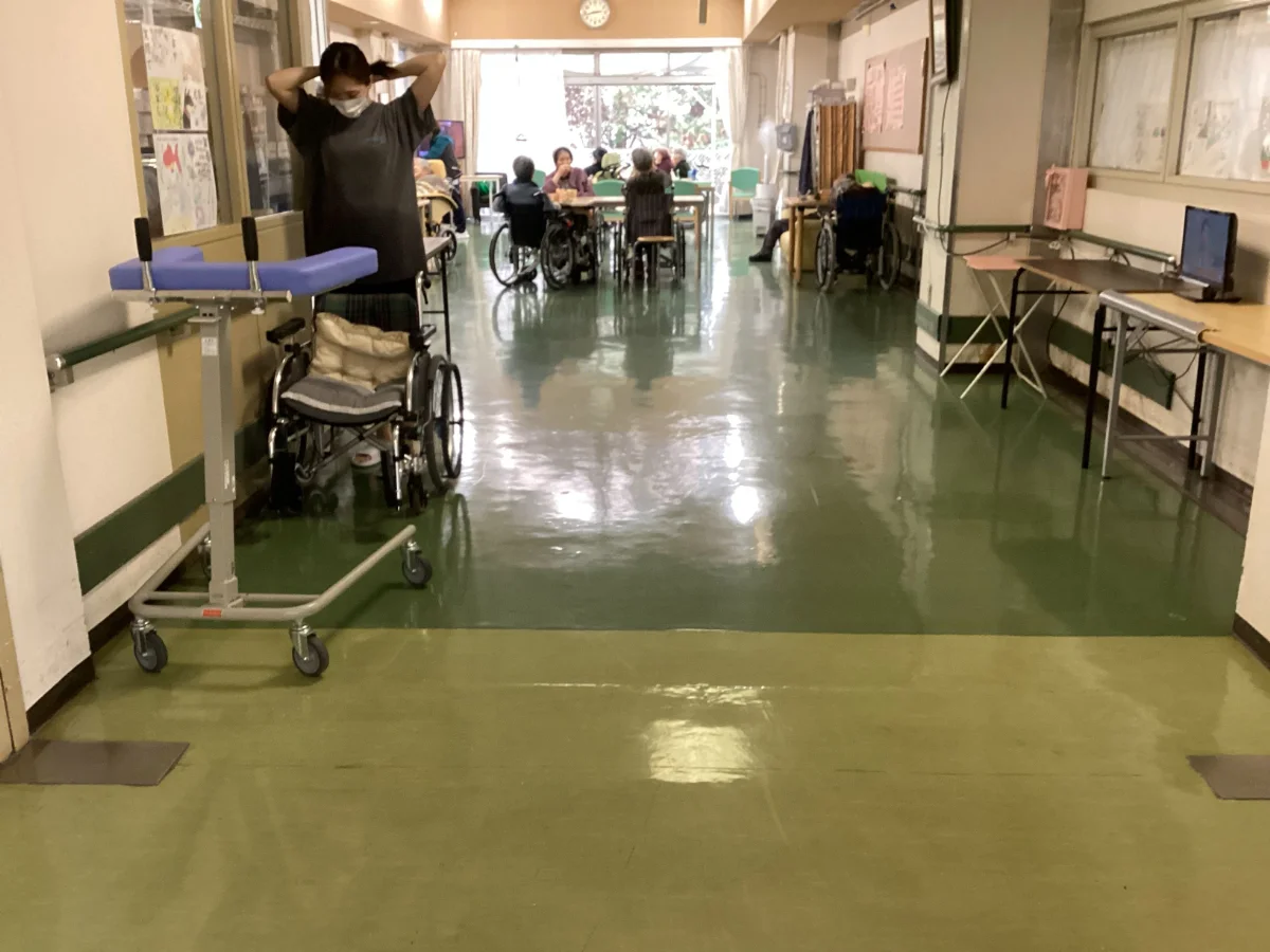 熊本市北区にある、特別養護老人ホームT様の廊下床長尺シート張替工事を行いました。