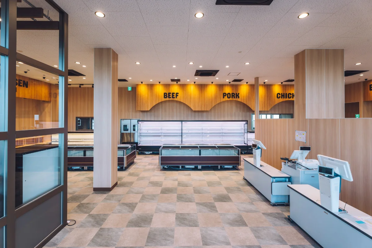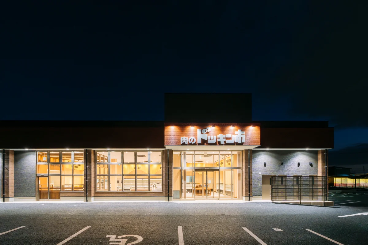 熊本市東区戸島に完成した、肉のドッキン市 戸島店の新築工事を行いました。