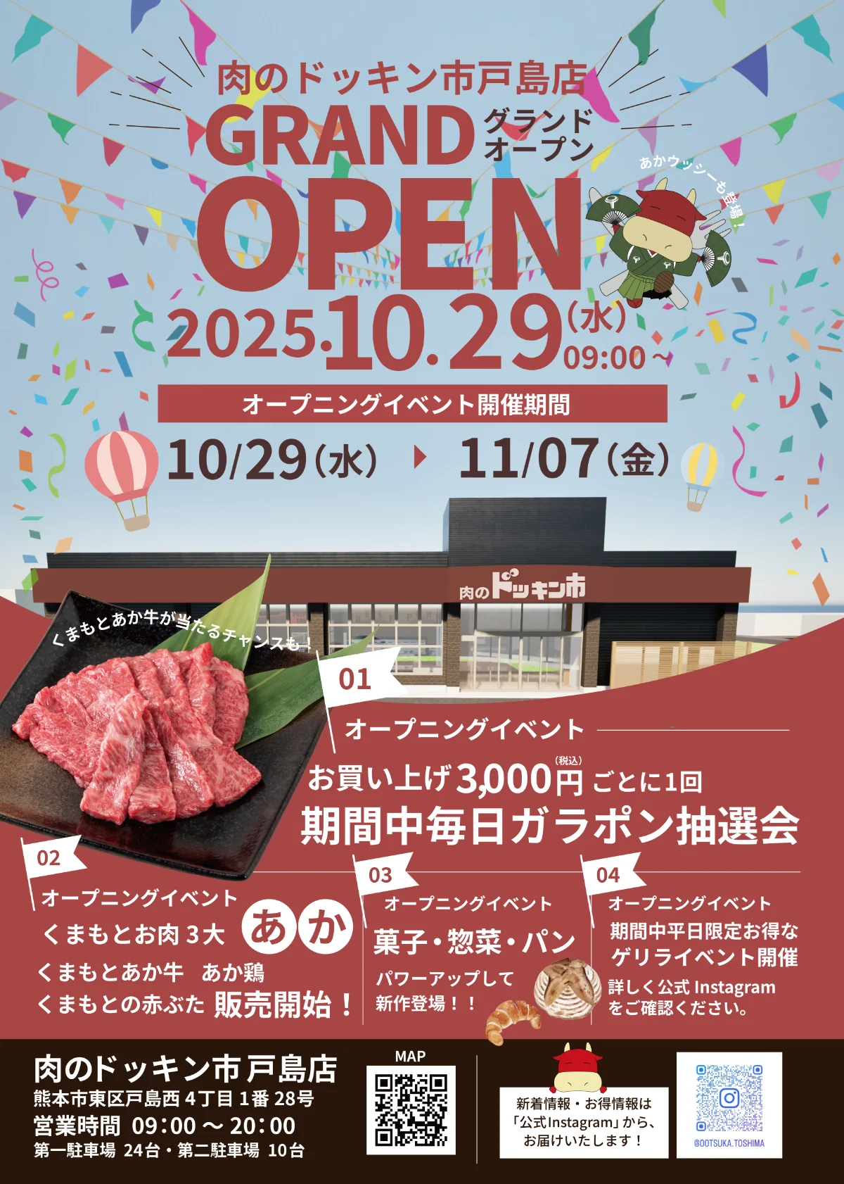 肉のドッキン市戸島店は、2025年10月29日(水)9時からグランドオープンいたします。