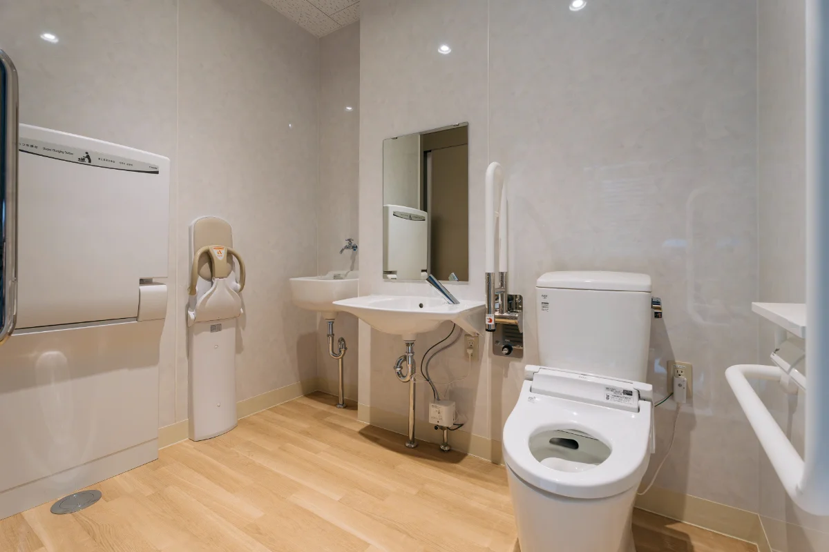 トイレには赤ちゃん用のイスやおむつ台も完備しています。