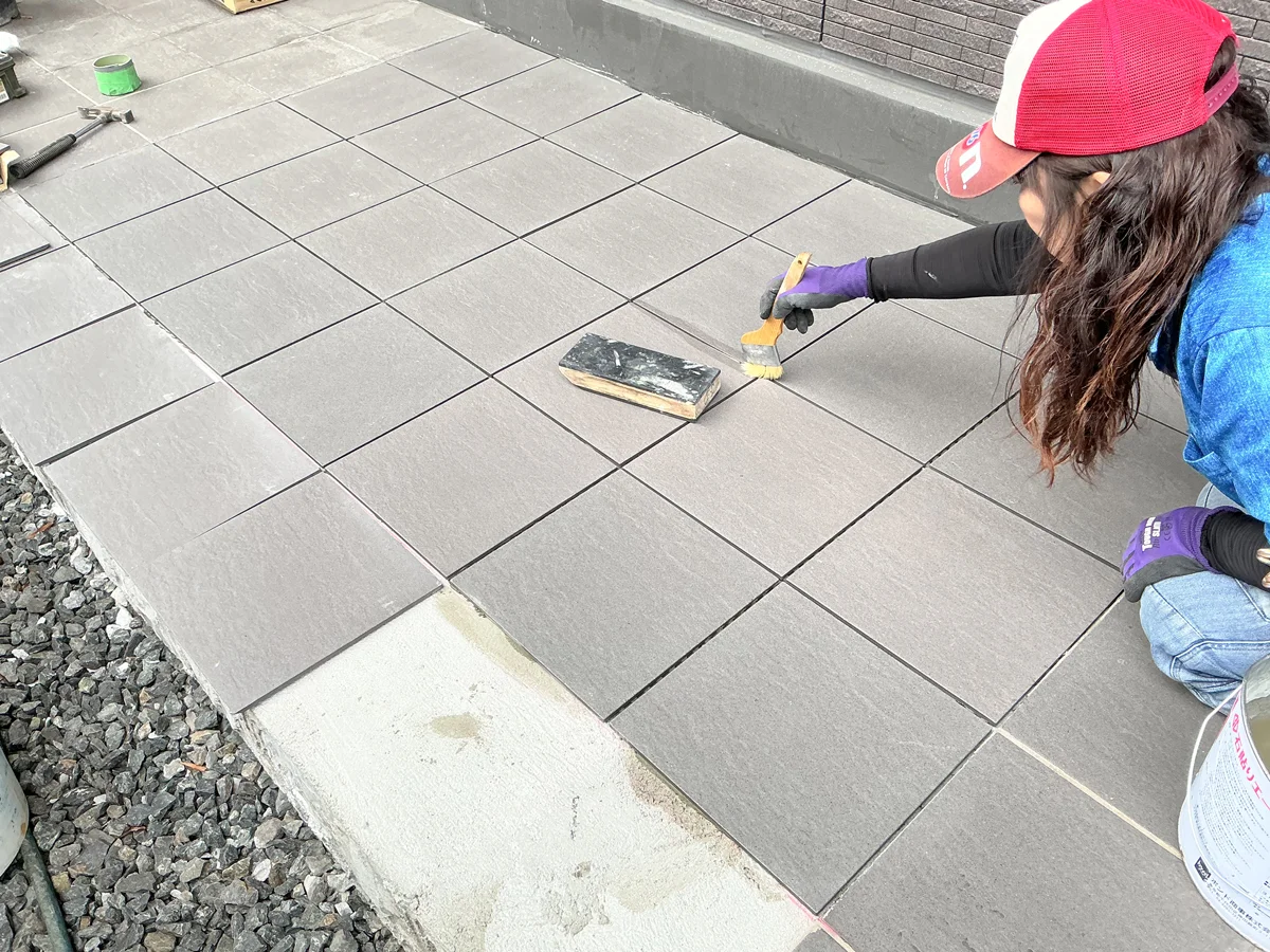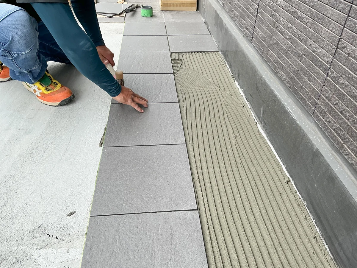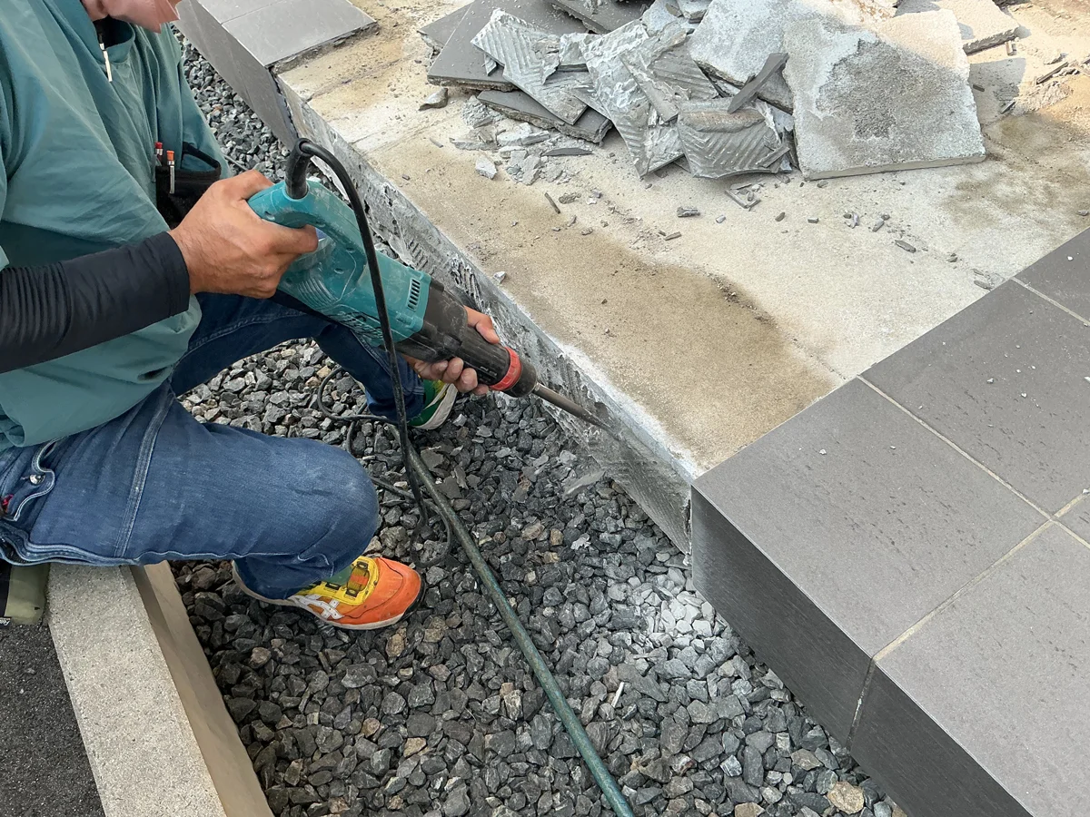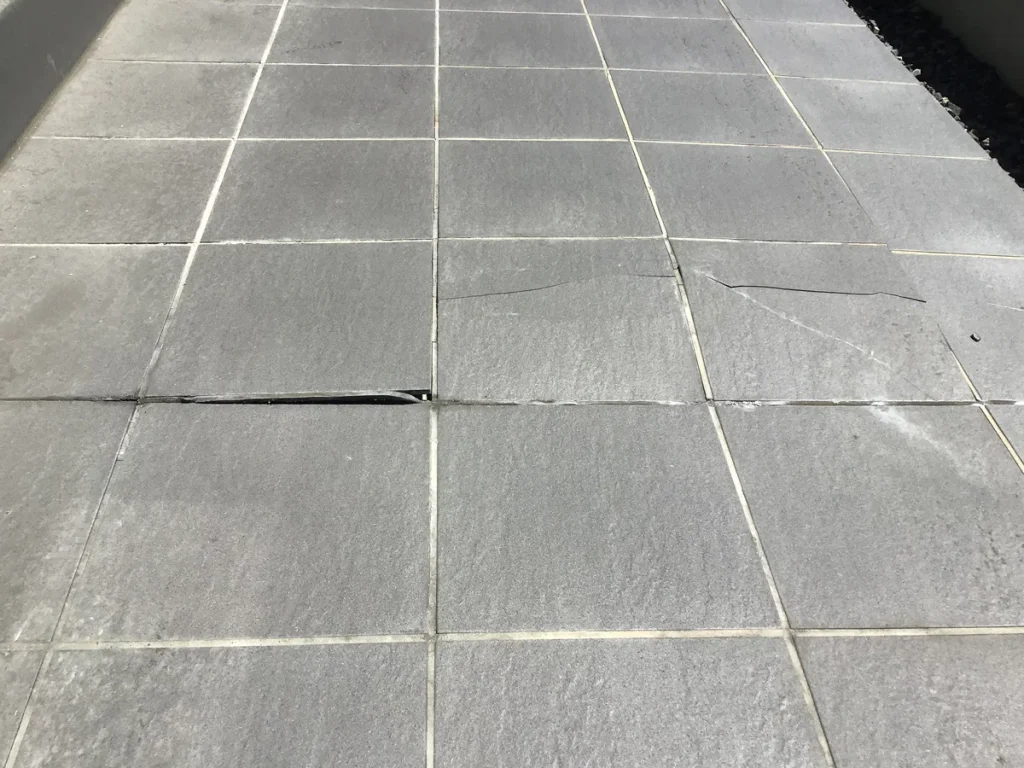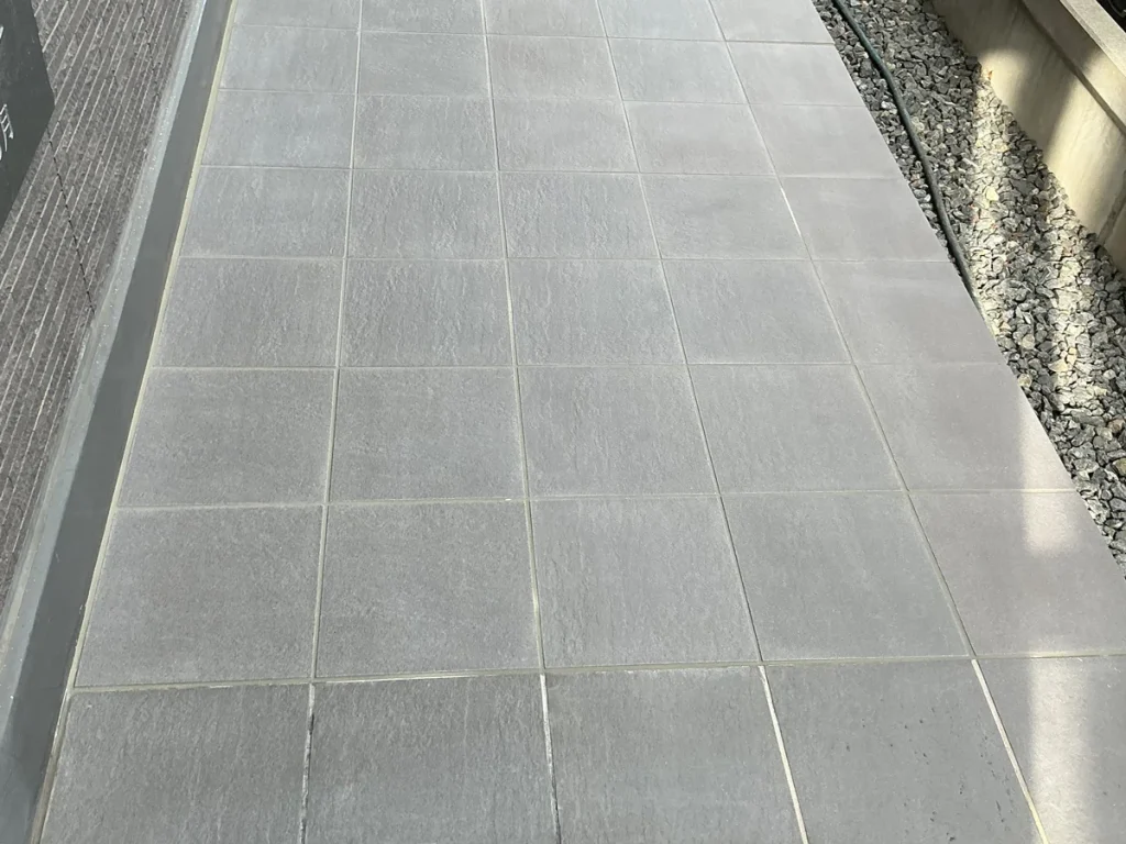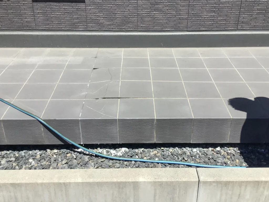 経年劣化により通路のタイルの一部に浮きや割れが生じており、つまづきや転倒の危険性もありました。