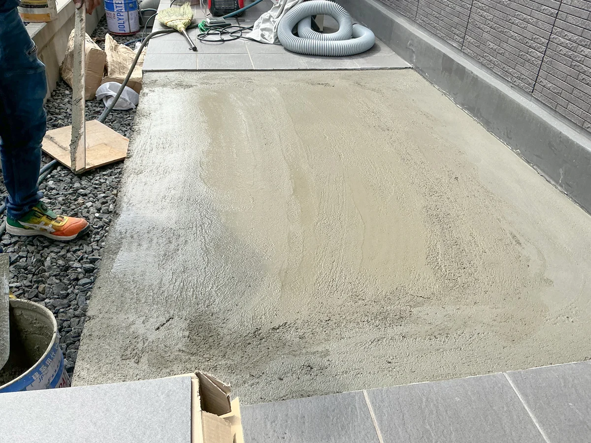 熊本市中央区のK病院様にて、外部通路のタイル貼り替え工事を行いました。