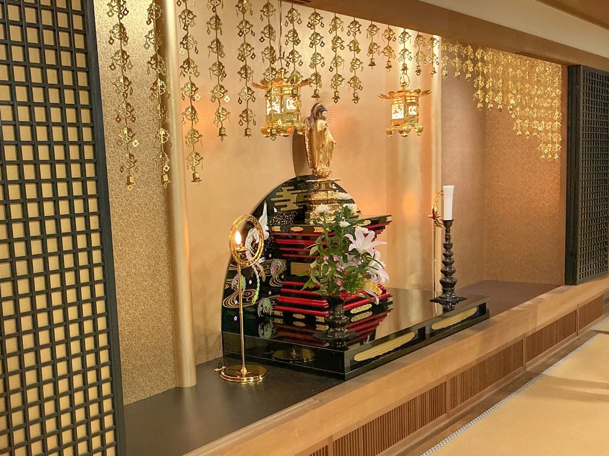 公共施設・商業施設 2026.2.5 福岡県大牟田市にある光円寺様にて、仏壇改修工事を行いました。 施工前 施工後 経年劣化による金箔の剥がれが目立っていたため、金箔を貼り直し、スポットライト照明を取り付けました。 全体的に明るく豪華な仏壇へと生まれ変わりました。 施工前 施工後