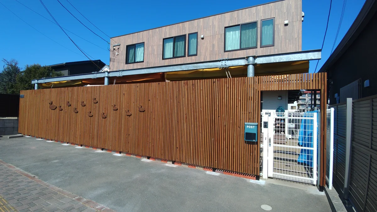 熊本市東区にあるわんぱくかるがも保育園様にて、木塀設置工事を行いました。